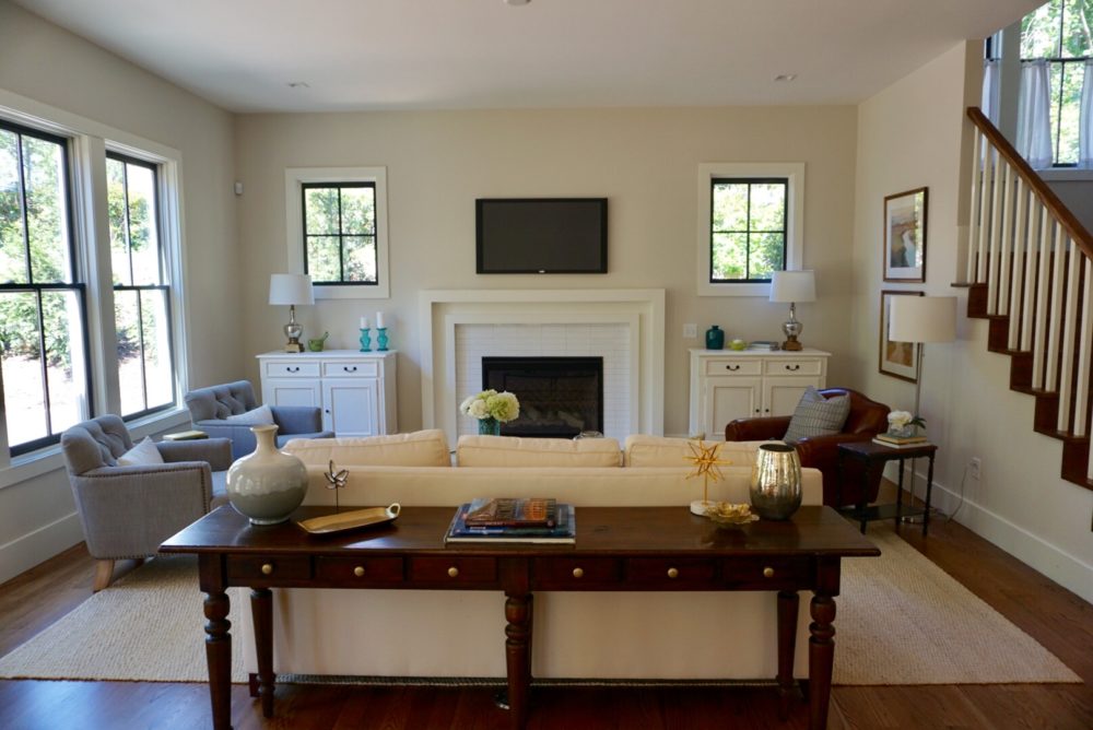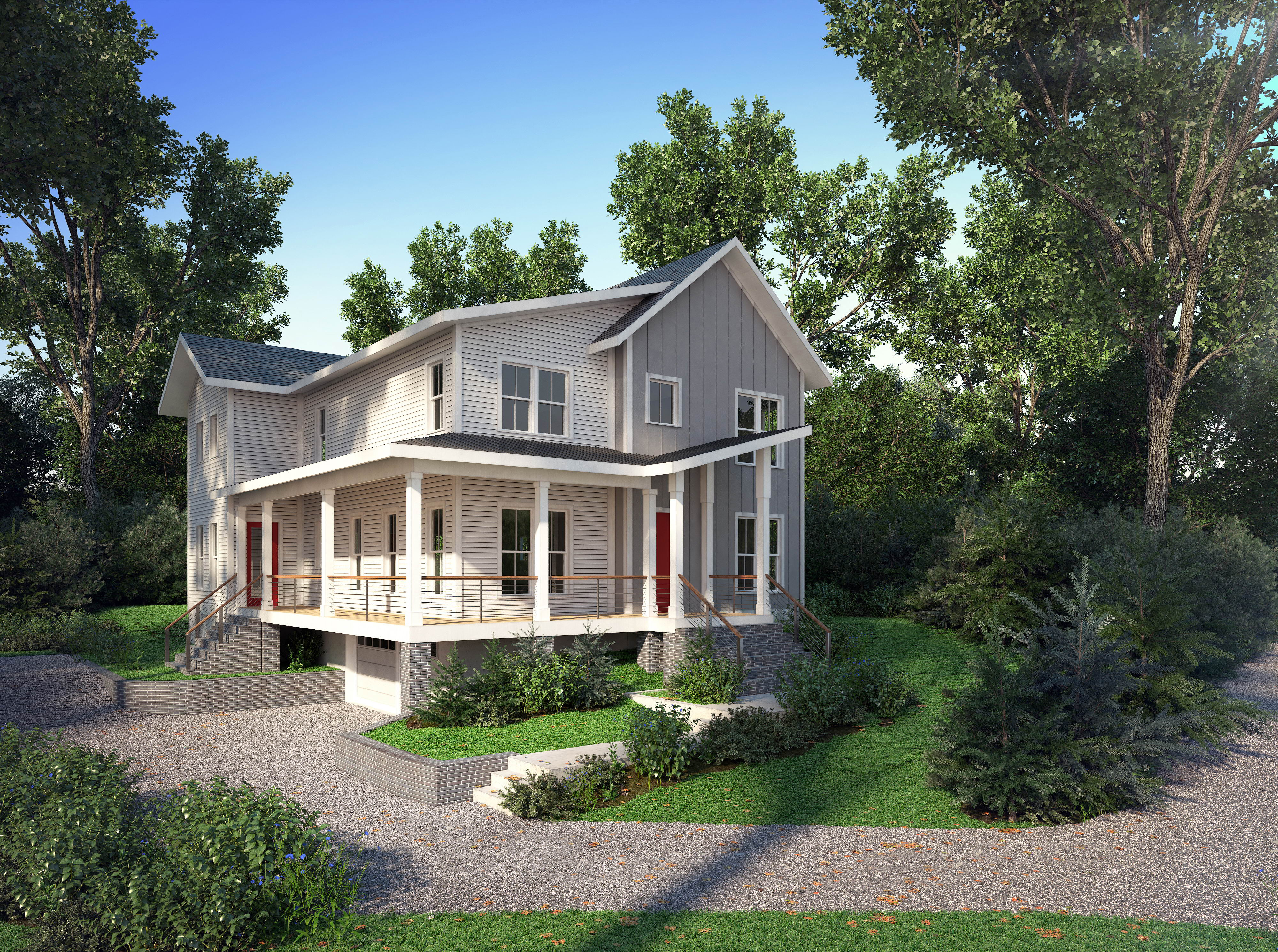A modern interpretation of the American farmhouse in the University Park neighborhood. The home features a huge wrap-around porch overlooking Mayview Green, a coveted grassy park lined wit historic oaks trees.